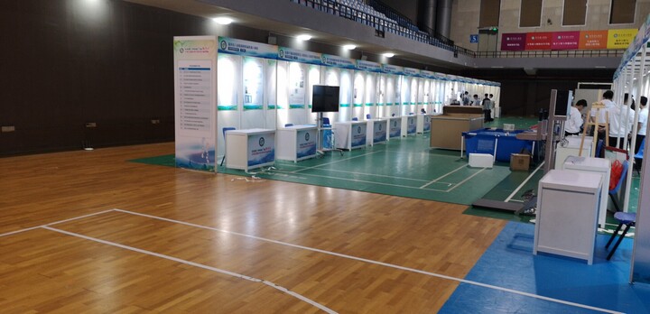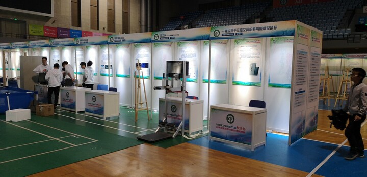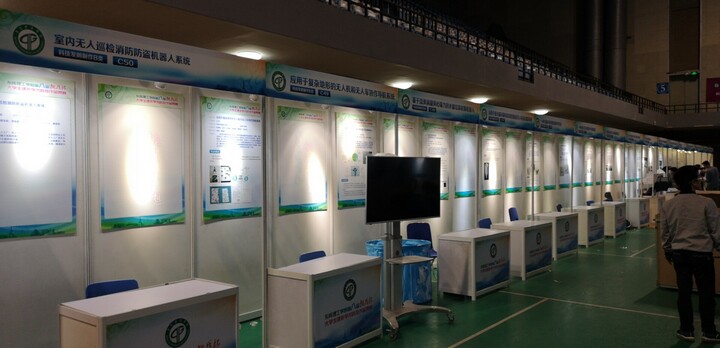 本次活動 物料用到標準展位101個(包含射燈 接線板 鋁料前臺 美工KT板 門楣) 桁架背景 舞臺 地毯   桌椅等 6個小時搭建完成 受到校園領導及師生一致好評 。