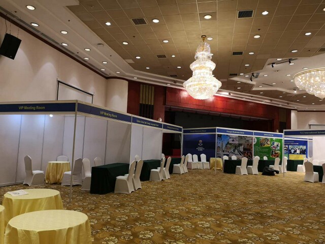 此次活動物料:3X3X2.5米全新標準展位 30個 桁架簽到背景 舞臺 展架等等