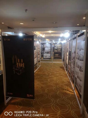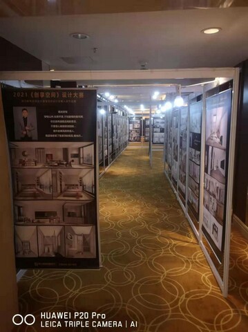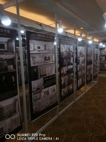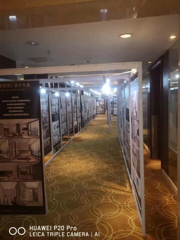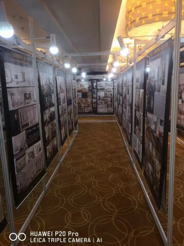 以下為書畫展現場搭建實例圖:所用材料 1X2米展架與1X2.5米展架因場地尺寸問題 混合使用。