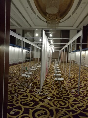此次物料:標準展位:2X1.5  VIP展位:3.5X3米  桁架背景5X3   8X4  6X3 等等不同規格   紅色拱門 條幅 KT板 展架 等等更多物料。